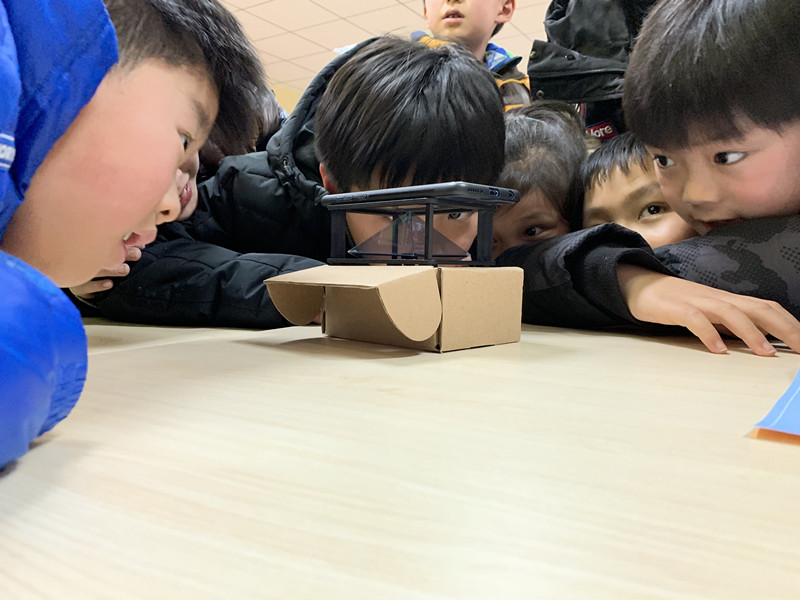 在第一堂课上,老师带领小朋友们一起发现光、认识光。首先,老师和小朋友们一起讨论生活中的光。然后,采用“和光赛跑”的形式,邀请小朋友们亲身参与,感受并认识光速。随后,“光和光波”、“看不见的墙壁”小实验更是令小朋友们连连惊叹。在后续几堂课上,小朋友们既动手又动脑,见识到了“会拐弯的光”、“全息投影”、“光的彩虹”、“VR虚拟与现实技术”等光的超能力。课程结束后,小朋友们互相交流感受:“光就像一个魔术师,太神奇了!”