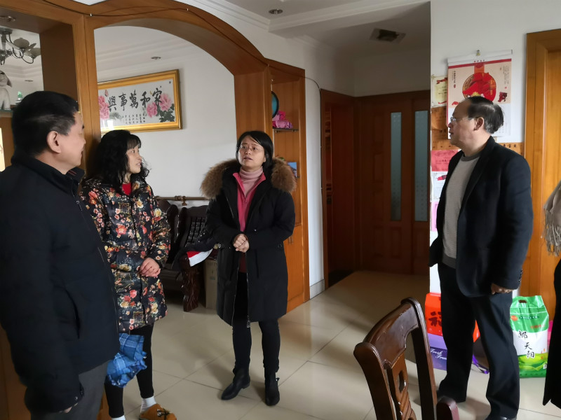 2019 1 5 日上午,园区关工委副主任、园区教育局副局长林红梅带领园区关工委秘书长葛健慧和园区关工委办公室主任卢根泉,前往唯亭街道慰问部分贫困家庭和“五老”网吧义务监督员代表。园区关工委一行在唯亭街道关工委王燕主任和相关社区居委会领导的陪同下,先后来到唯亭东亭家园、古娄一村走访了两户贫困家庭,送上了慰问品,把关工委的温暖和新年祝福送给他们。